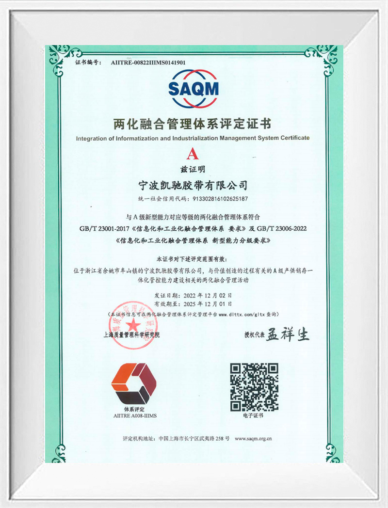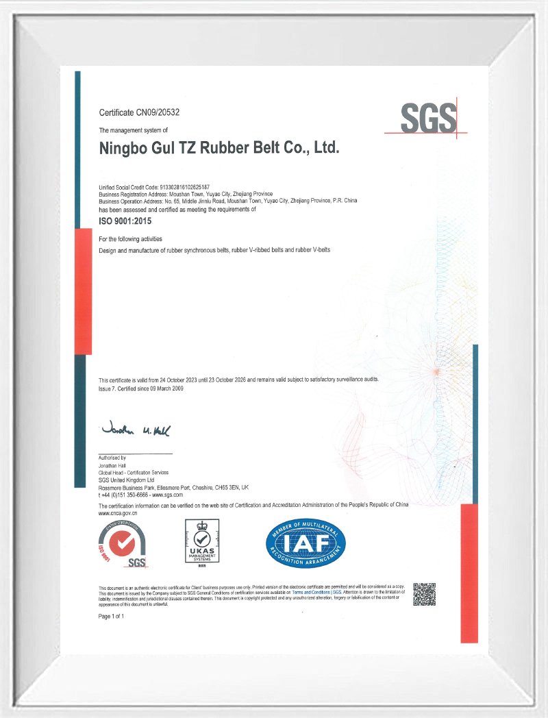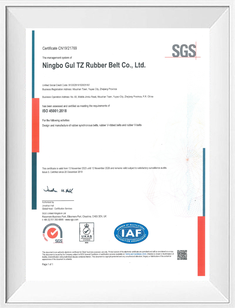 公司系國(guó)家高新技術(shù)企業(yè),建有省級(jí)研發(fā)中心,是國(guó)際標(biāo)準(zhǔn)、國(guó)家標(biāo)準(zhǔn)的參與起草和制定單位,長(zhǎng)期致力于橡膠傳動(dòng)帶的研發(fā)設(shè)計(jì)和制造,擁有多項(xiàng)發(fā)明和實(shí)用新型專利。公司目前已通過(guò)ISO9001、ISO45001、ISO14001體系認(rèn)證。